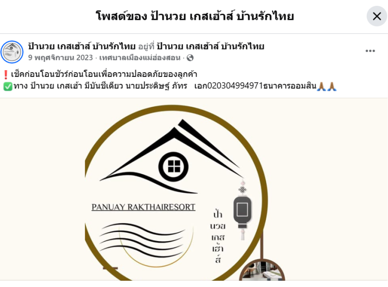 ภาพจากเพจ ป้านวย เกสเฮ้าส์ บ้านรักไทย