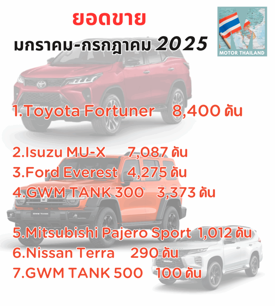 ยอดขายรถยนต์กลุ่ม SUV – PPV มกราคม-กรกฎาคม 2025