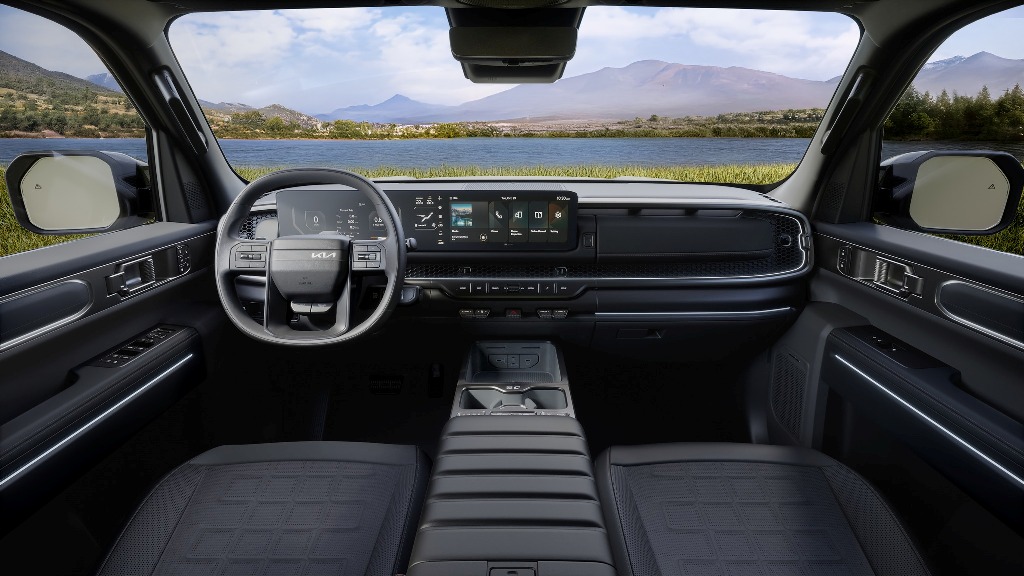 ภายในมีแผงมาตรวัดดิจิทัลขนาด 12.3 นิ้ว ร่วมกับจอแสดงผลขนาด 5 นิ้วตรงกลาง และจอแสดงผลระบบอินโฟเทนเมนท์ขนาด 12.3 นิ้ว แม้จะมีพื้นที่หน้าจอที่กว้างขวาง แต่ Kia ก็ไม่ได้ละทิ้งสวิตช์เกียร์แบบเดิม ยังคงมีปุ่มและสวิตช์จำนวนหนึ่งสำหรับเข้าถึงฟังก์ชันที่ใช้บ่อยที่สุด