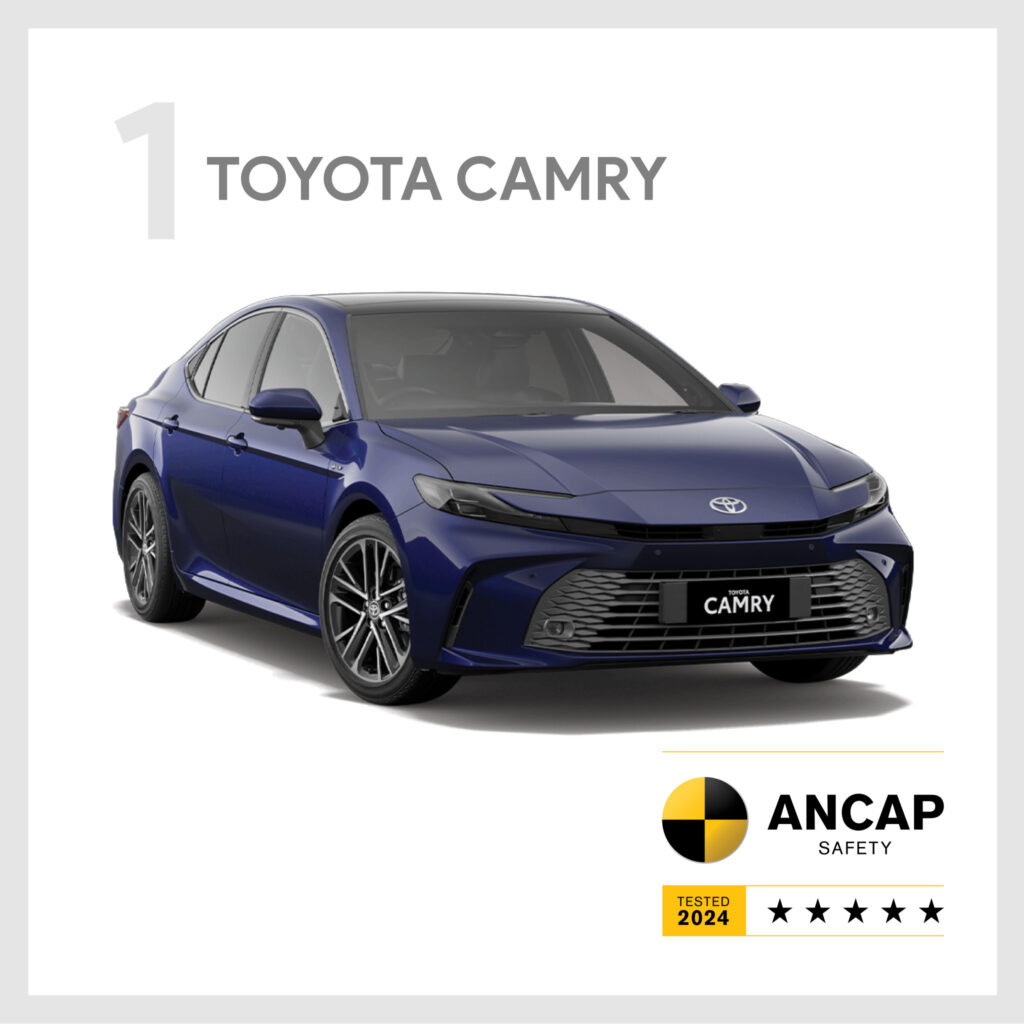 Toyota Camry (รถยนต์ขนาดกลาง ไฮบริด) ได้รับการจัดอันดับสูงสุดในบรรดารถทุกรุ่นที่ได้รับการจัดอันดับโดย ANCAP ในปี 2024 โดยได้รับคะแนนที่ 88.4%