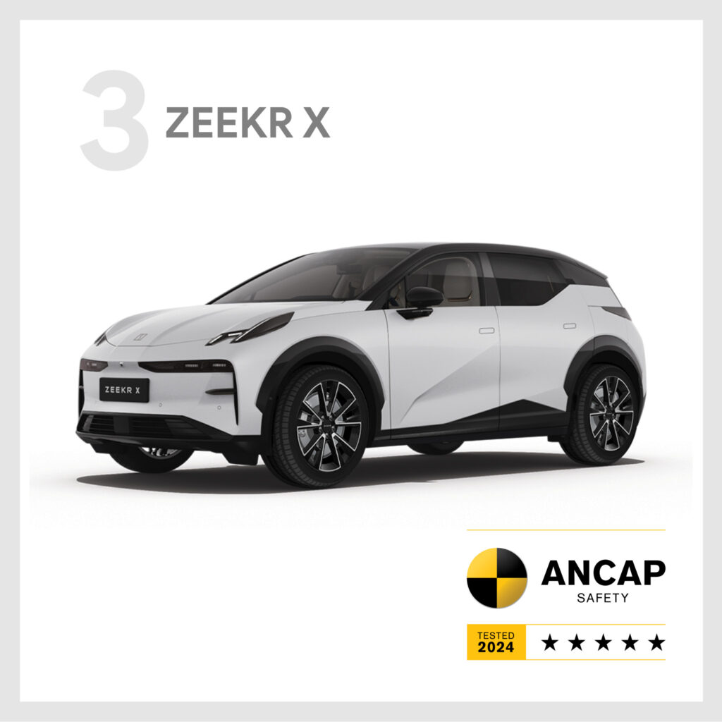 Zeekr ซึ่งเป็นน้องใหม่ที่เพิ่งเข้ามาอยู่ใน 3 อันดับแรก และตามหลัง CX-80 เพียงเล็กน้อย ก็สามารถทำคะแนนรวมได้ 87.4% สำหรับรถยนต์รุ่นแรกที่เปิดตัว นั่นคือ Zeekr X (SUV ขนาดเล็ก ไฟฟ้า)