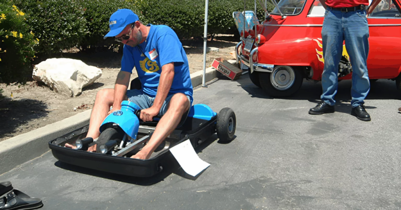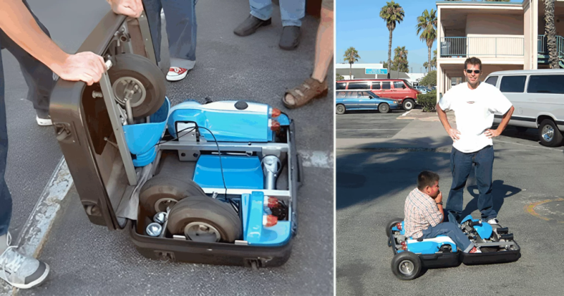 ทีมวิศวกร 7 คน รับคำท้าและภายในเวลาไม่ถึง 1 เดือน ทีมงานประกอบยานพาหนะที่สมบูรณ์ภายในกระเป๋าเดินทาง Samsonite แบบแข็งที่ดัดแปลง ผลลัพธ์ที่ได้คือสกู๊ตเตอร์ขนาดเล็กสามล้อพร้อมแฮนด์พับได้ ล้อขนาดเล็ก และเครื่องยนต์สองจังหวะ 34 CC.