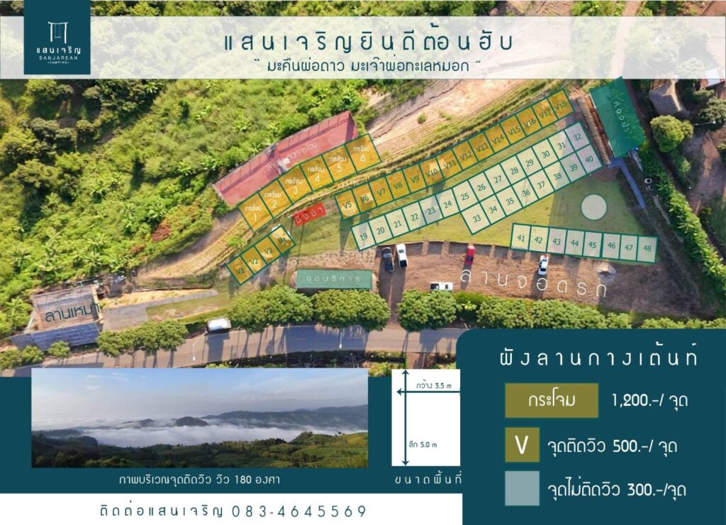 หากต้องการข้อมูลการจองที่พักหรือค่าบริการล่าสุดของ แสนเจริญ แคมปิ้ง แนะนำให้ค้นหาช่องทางติดต่อของที่พัก (เช่น เพจ Facebook) เพื่อสอบถามโดยตรง เนื่องจากราคาอาจมีการปรับเปลี่ยนตามฤดูกาลท่องเที่ยว