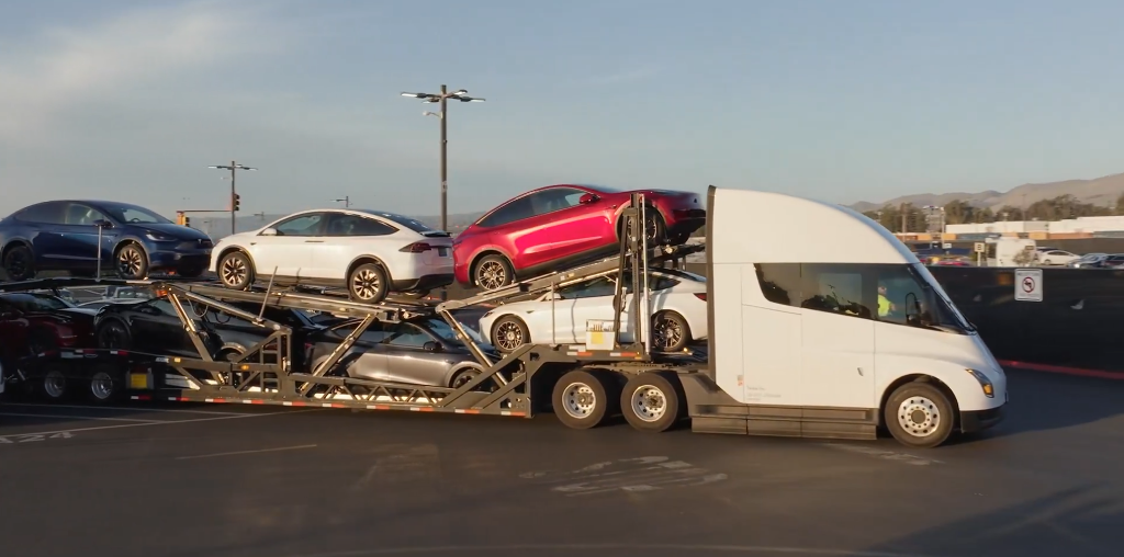 Tesla ขับเคลื่อนด้วยตัวเองโดยระบบขับเคลื่อนอัตโนมัติ จากโรงงานผลิตไปขึ้นรถบรรทุกขนถ่ายสินค้า โดยไม่ต้องมีการแทรกแซงจากมนุษย์ ในแคลิฟอร์เนีย