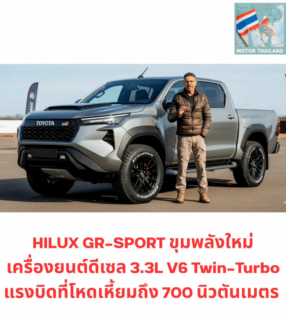 สื่อต่างประเทศเผย HILUX GR-SPORT ขุมพลังใหม่ เครื่องยนต์ดีเซล 3.3L V6 Twin-Turbo แรงบิดที่โหดเหี้ยมถึง 700 นิวตันเมตร ผสานเกียร์อัตโนมัติ GR Direct Shift 10 สปีด พร้อมระบบ Sport Mapping และ Paddle Shifter ถ่ายทอดกำลังได้ทันทีและประสิทธิภาพสูงสุด